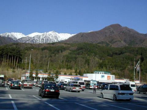 行く途中で寄った駒ヶ根SA。向こうにはまだ雪を冠した山が見える。ミツバツツジが綺麗でした。
