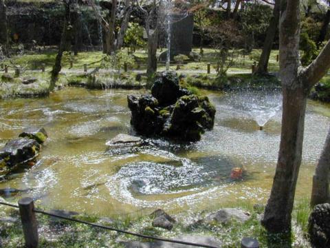 懐古園内にある神社の池。水の流れによって、落ちた花びらが綺麗な渦巻模様を作ってます。