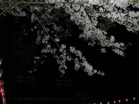 夜桜も撮ってみました。デジカメに付いている小さなフラッシュでは難しいですね。