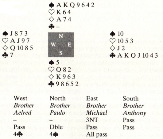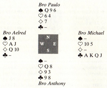 「パウロが♠をビッドしたのでリードは私だ!」 と苛立ったマイケル修道士は叫びました。