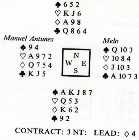 ・アントネスは♣Jをリードしました!♣を攻めるのは明らかですが、どのカードをプレイすべきでしょうか? これが彼の推論でした。