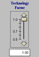 ![]() | Technology Investment - The technology multiplier is a multiplier against the cost of exploration. It represents advances in technology that make it cheaper to access the unproven natural gas. Change this multiplier to a fraction of the base cost to see the impact of a technology advance at any time during the simulation. |