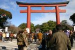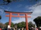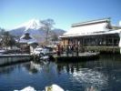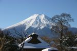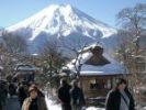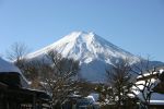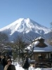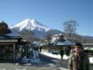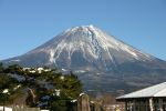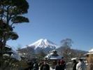 藤沢始発駅で乗車した江ノ電は、元日とも思えぬガラ空きで、ちょっと拍子抜けです。山頂に少し雲がかかっている富士山が、家並みの間からチラリチラリ見えます。向かいの座席に座っていた神戸から来たという子ども連れのお母さんに、「おかしなことをお聞きしますが、ひょっとしてあれが富士山なのですか?」と尋ねられたごんべ夫婦は、「はい、あれが正真正銘の富士山ですよ。今日はいいお天気でラッキーでしたね」と親切に応対いたします。