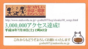 本日夕方、『なつかしい童謡・唱歌』へのアクセス数が250万を超えました。この調子なら、300万は7月の末かも。