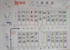 旅行等記念に、2日目のバス座席表をいただいて帰ったのですが、なんと、バスガイドさん、運転手さん、添乗員さんの「キスマーク」&「メッセージ」付きです。バスガイドさんお薦めの土産を買うことは、これまでほとんどなかったのですが、今回旅行では、バスガイドさんが「めっちゃウマ!」と推奨のお土産を6種類も買ってしまいました。