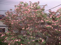庭のハナミズキのつぼみが(ほんとは、植物学的にはつぼみじゃないけど)、どんどん膨らんでいくのがわかります。去年の花は下左端写真のようでしたが、今年は姪っ子の結婚式で帰省している間に、下右二点の写真のごとく、4月20日夕刻には満開が過ぎてしまいました。
