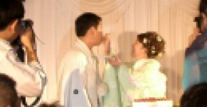 倉吉駅前の結婚式場で、ごんべの姪っ子NAOKOくんがTAKASHIくんと結婚しました。仲人なし・無宗教の「人前結婚式」。両家が同姓であったため、「○○家、○○家」と同じ姓を二度言わなければならないので、司会の女性がちょっと戸惑い気味でした。ほとんどの列席者が受付で渡された席次表で、同姓の数を数えておられたようです。(披露宴列席者106名中、○○姓は30人おりました。28.3%です)