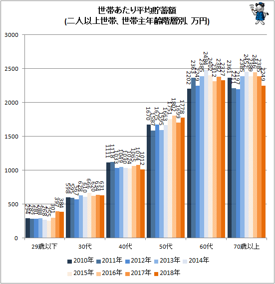を考慮すると、金融庁の報告書は一体どの階層、範囲をターゲットとして書かれているものか曖昧である。 少なくとも公的年金受給層である60代以降は、平均的には貯蓄の準備はできている。