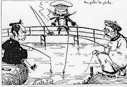 この状況を当時のフランス人が風刺したものが上図であり、左図のように朝鮮は日本と清のどちらに依るべしかを伺う「池の魚」として描かれています。 このあたりは、今日の韓国の状況とも酷似しています。